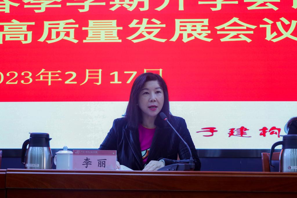 嶺南春早,奮進(jìn)當(dāng)時(shí)。2月17日新學(xué)期伊始,學(xué)校在省職教城校區(qū)辦公樓學(xué)術(shù)報(bào)告廳召開(kāi)2023年春季學(xué)期開(kāi)學(xué)工作會(huì)議暨學(xué)校高質(zhì)量發(fā)展會(huì)議。全體校領(lǐng)導(dǎo)、全體中層干部、正高職稱教師、各專業(yè)主任、教研室主任參加會(huì)議。學(xué)校黨委書(shū)記吳琦琳主持會(huì)議并講話,校長(zhǎng)李麗作工作部署。
