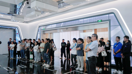在中德工業(yè)服務(wù)區(qū)(三龍灣)園區(qū)展廳,學(xué)生們跟隨講解員認真聆聽三龍灣的建設(shè)歷程及發(fā)展規(guī)劃,同時通過觀看展廳內(nèi)的圖片、文字、影像,了解了中德工業(yè)服務(wù)區(qū)在對外合作、搭建重大平臺項目、舉辦國際化品牌活動、服務(wù)企業(yè)雙向交流等方面的情況,直觀感受到粵港澳大灣區(qū)科技發(fā)展和先進生產(chǎn)力。