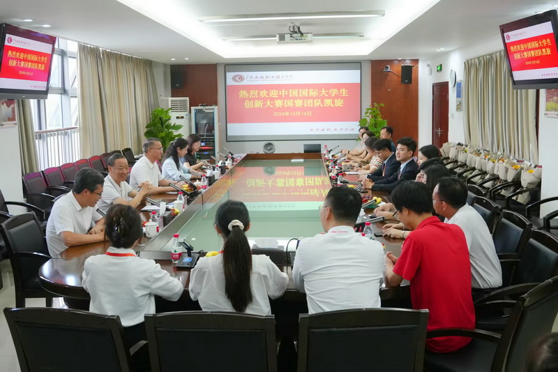 學(xué)校高度重視本屆大賽,自4月份大賽啟動(dòng)以來,成立了由創(chuàng)新創(chuàng)業(yè)學(xué)院、教務(wù)部、科技部、學(xué)生工作部、團(tuán)委等有關(guān)職能部門以及各二級(jí)學(xué)院組成的大賽工作組。總決賽現(xiàn)場比賽期間,學(xué)校黨委書記葉忠明和副校長張小廣全程帶隊(duì)參賽,讓參賽團(tuán)隊(duì)深受鼓舞、倍感振奮。在項(xiàng)目團(tuán)隊(duì)備賽期間,校長李麗和副校長吳志敏親臨現(xiàn)場指導(dǎo)參賽項(xiàng)目,為參賽選手加油鼓勁,勉勵(lì)他們?cè)诖筚愔谐浞终宫F(xiàn)廣東工程學(xué)子風(fēng)采。大賽結(jié)束第二天,學(xué)校在廣州校區(qū)組織召開座談會(huì),歡迎參賽團(tuán)隊(duì)載譽(yù)歸來,葉忠明書記和李麗校長在座談會(huì)上向參賽團(tuán)隊(duì)指導(dǎo)老師和選手們送上鮮花,表達(dá)祝賀和慰問之情,并號(hào)召全校師生以獲獎(jiǎng)團(tuán)隊(duì)為榜樣,發(fā)揚(yáng)拼搏精神,奮發(fā)有為,助力學(xué)校“雙高”建設(shè)和高質(zhì)量發(fā)展。