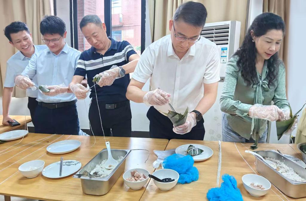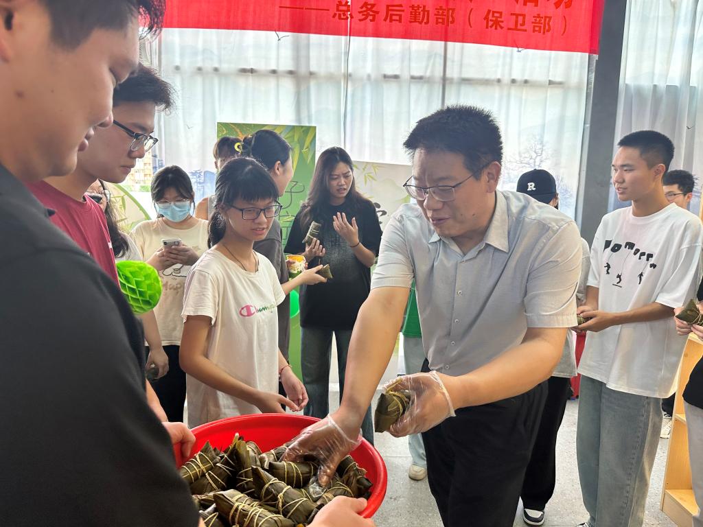 粽葉飄香迎端午,傳統(tǒng)文化潤(rùn)心田。5月30日中午,學(xué)校兩校區(qū)同步開(kāi)展“萬(wàn)水千山‘粽’是情 端午佳節(jié)共歡慶”端午節(jié)主題活動(dòng)。食堂當(dāng)天中午共計(jì)發(fā)放5000個(gè)粽子給師生品嘗,學(xué)校黨委書記葉忠明,黨委副書記、校長(zhǎng)李麗,黨委副書記、紀(jì)委書記徐振昌,黨委委員、副校長(zhǎng)吳志敏,黨委委員、副校長(zhǎng)張永強(qiáng)與兩校區(qū)師生共同參與活動(dòng),共度端午佳節(jié)。參加活動(dòng)的有各學(xué)院學(xué)生代表、青馬班學(xué)員代表、紅十字會(huì)與義警隊(duì)代表,還特邀了我校國(guó)際教育學(xué)院學(xué)生一同參與活動(dòng),讓外國(guó)友人通過(guò)傳統(tǒng)美食制作感受中華傳統(tǒng)文化的深厚底蘊(yùn)。