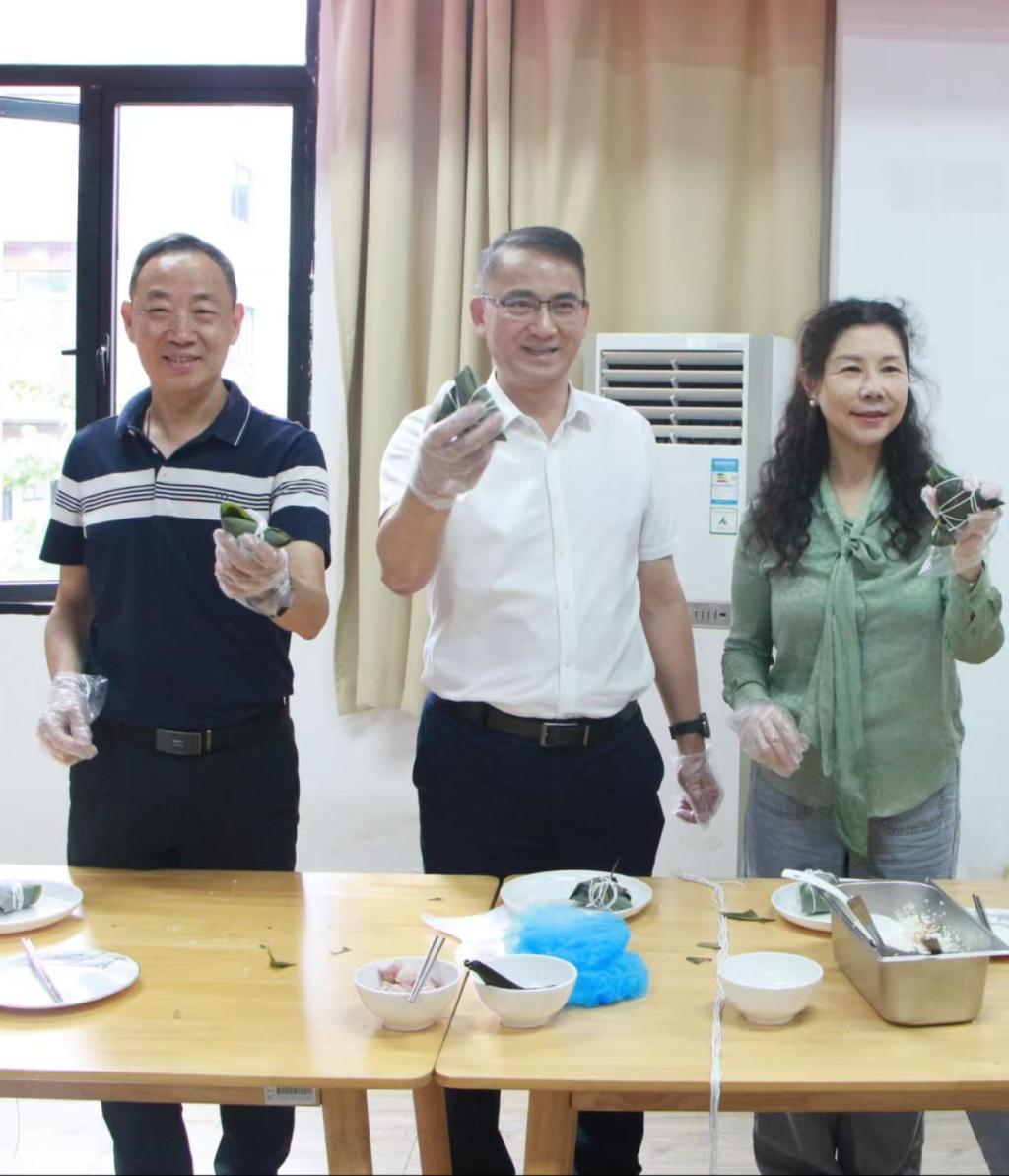 校領(lǐng)導(dǎo)展示親手包制粽子
