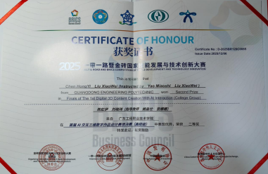 “一帶一路”暨金磚國家技能發(fā)展與技術創(chuàng)新大賽是展示各國職業(yè)教育成果、促進技術交流與合作的重要國際平臺。在2025年大賽中,我校藝術設計學院師生積極參與、勇于創(chuàng)新,在多個賽項中表現(xiàn)突出,共榮獲二等獎4項、三等獎3項,充分展現(xiàn)了學院在“AI+設計”領域的教學成果與創(chuàng)新能力。