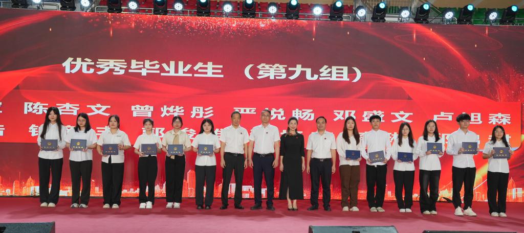 會(huì)上,學(xué)校黨委副書(shū)記、紀(jì)委書(shū)記徐振昌宣讀了《廣東工程職業(yè)技術(shù)學(xué)院關(guān)于表彰2024屆優(yōu)秀畢業(yè)生的決定》,并由校領(lǐng)導(dǎo)為全體優(yōu)秀畢業(yè)生頒發(fā)畢業(yè)證書(shū)。這是對(duì)畢業(yè)生們過(guò)去努力的肯定,也是對(duì)他們未來(lái)繼續(xù)努力的鞭策和鼓勵(lì)。