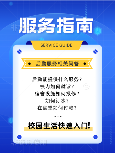 總務(wù)后勤部(保衛(wèi)部)主要承擔(dān)校園安全保衛(wèi)、日常維修、環(huán)境維護(hù)、醫(yī)療服務(wù)、餐飲服務(wù)、基礎(chǔ)建設(shè)等工作,堅持“以人為本、用心服務(wù)、追求完美”的宗旨,不斷為大家提供更優(yōu)質(zhì)的服務(wù)。為了大家能盡快熟悉校園環(huán)境,融入大學(xué)生活,了解后勤服務(wù),我們匯編了服務(wù)指南,供大家參考。