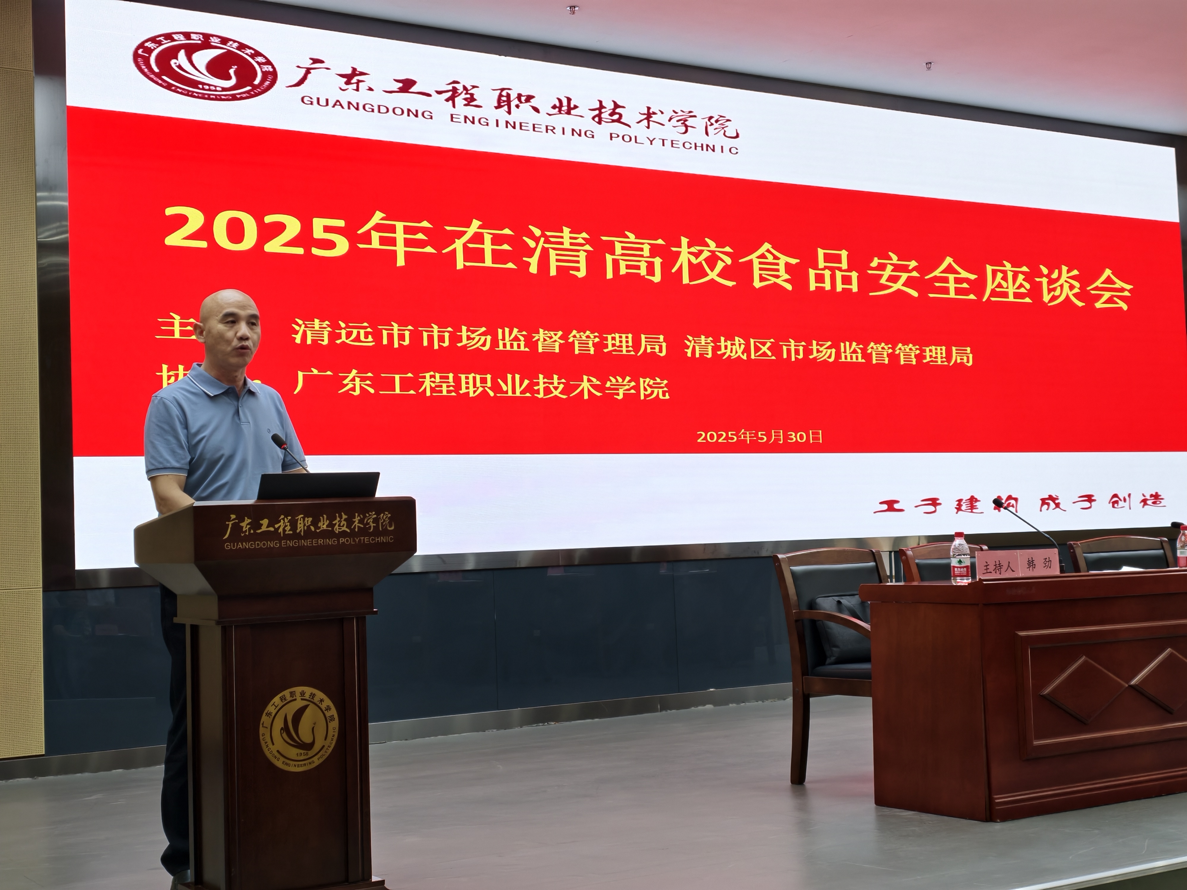 為進一步加強高校食堂食品安全管理,提升校園食品安全保障水平,切實保障廣大師生的飲食安全,2025年5月30日,清遠市市場監(jiān)督管理局、清城區(qū)市場監(jiān)督管理局走進高校,在我校成功舉辦了一場在清高校食品安全座談會。清遠市市場監(jiān)管局、清城區(qū)市場監(jiān)管局相關(guān)領(lǐng)導及負責人,在清高校分管后勤校領(lǐng)導、后勤負責人、食堂承包方法人和食品安全總監(jiān)參加了此次座談會,學校黨委委員、副校長張永強,總務(wù)后勤部(保衛(wèi)部)部長廖彥云出席會議。
