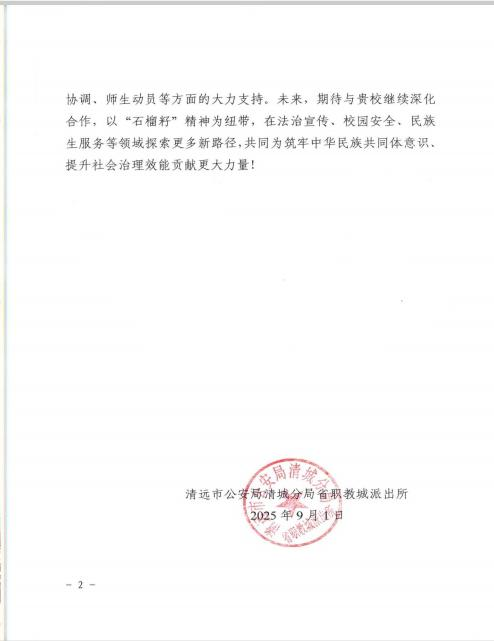 省職教城派出所分管領導郭智鵬副所長對此次工程學院推普、普法實踐活動給予高度贊賞,認為此次校警聯(lián)動實踐不僅深化了民族團結,更提升了學生的社會責任感與實踐能力,當場向學校回贈感謝信,為校警協(xié)同育人寫下生動注腳。