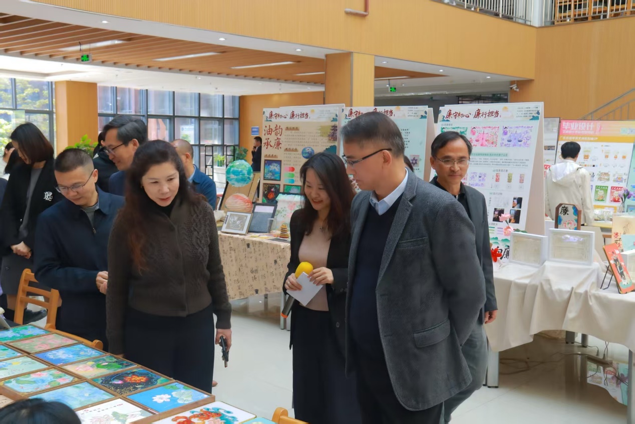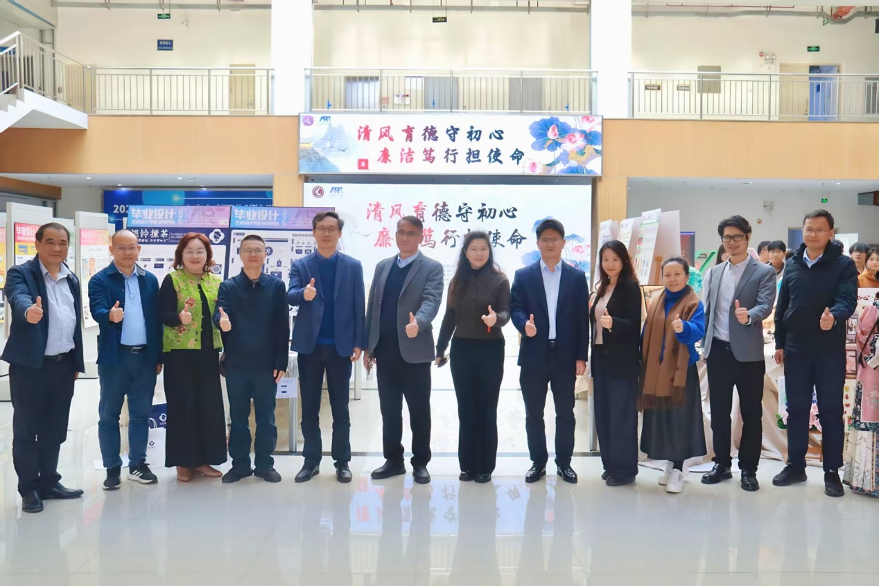 為全面貫徹落實(shí)新時代高校廉政文化建設(shè)要求,12月16日,由學(xué)校紀(jì)委主辦,藝術(shù)設(shè)計(jì)學(xué)院黨委承辦的“清風(fēng)育德守初心 廉潔篤行擔(dān)使命”校園廉潔文化作品展在廣州校區(qū)學(xué)校圖書館正式啟幕。學(xué)校黨委書記葉忠明,黨委副書記、校長李麗,黨委委員、副校長吳志敏,黨委委員、副校長張小廣,黨委委員、紀(jì)委書記吳壁葵,紀(jì)檢室、馬克思主義學(xué)院、藝術(shù)設(shè)計(jì)學(xué)院、圖書館等部門負(fù)責(zé)人與師生代表共同參加作品展開幕式,開幕式由學(xué)校紀(jì)委副書記、紀(jì)檢室主任廖瑋主持。