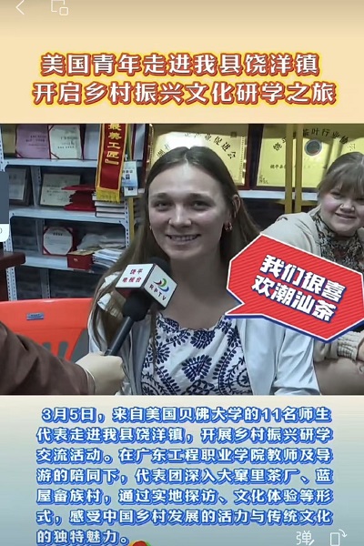 在潮州,十大制茶名師李詩忠為師生們細致講解單叢茶文化,帶領(lǐng)師生們沉浸式領(lǐng)略潮州茶韻的獨特魅力。移步藍屋畬族村,師生們走進省級重點文物保護單位泰華樓,探尋古建筑里的歷史底蘊;伴隨竹竿舞的歡快節(jié)奏,師生們沉浸式感受了畬鄉(xiāng)人民的淳樸熱情。