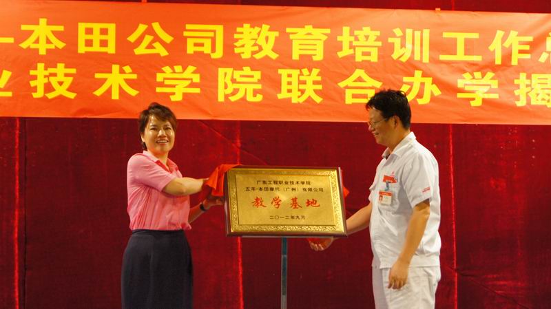 我校胡艷曦副校長(zhǎng)、繼續(xù)教育學(xué)院趙敏青院長(zhǎng)及陳景春副院長(zhǎng)等一行,出席了在五羊本田公司舉行的"廣東工程職業(yè)技術(shù)學(xué)院——五羊本田公司校企聯(lián)合辦學(xué)揭幕儀式"。