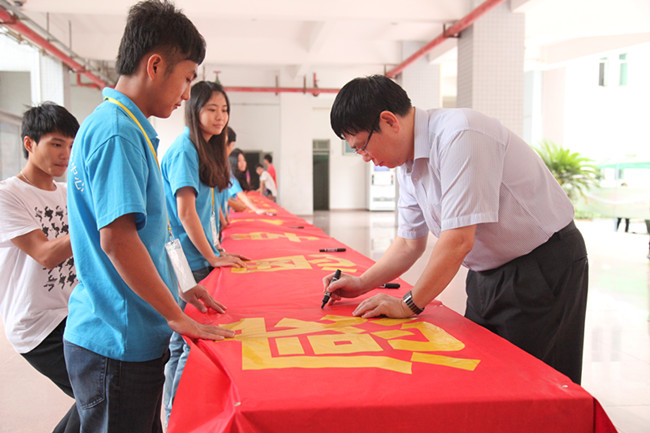 發(fā)放儀式結(jié)束后,參會的學院領導、老師和235名受助學生在教學樓前參加"感恩學校,讓我們攜手展翅高飛"的簽名活動,表達了全體師生的共同心聲。