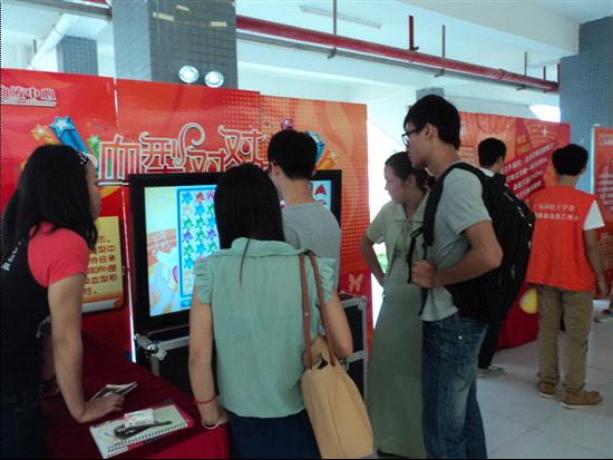 10月18日,在西校區(qū)和鳳凰學(xué)生公寓,同時進行無償獻血宣傳游戲和獻血車進校園活動。12點一下課,院紅十字會的干部和會員們顧不上吃飯就奔赴兩個校區(qū)開始了緊張而忙碌的工作,他們配合廣州血液中心的工作人員布置場地,現(xiàn)場豎起了大幅的獻血宣傳海報和一排血液和獻血知識的展板,旁邊配備了寓教于樂的游戲,有連連看觸摸屏、套圈、飛鏢等游戲項目,游戲現(xiàn)場吸引了大量的學(xué)生參與,同學(xué)們在愉快的游戲中不僅快樂無比,歡聲笑語不斷,同時也了解了血液和獻血方面的知識,更有部分同學(xué)玩完游戲就上了獻血車,奉獻了自己的一片愛心,當(dāng)天就有150多人無私地捐出了自己鮮紅的血液。