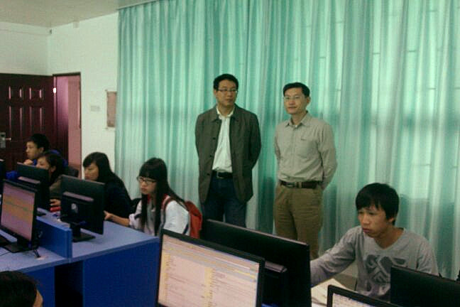 學(xué)工部張華部長、心理教研室主任張永強(qiáng)老師到機(jī)房檢查學(xué)生心理普查開展情況。