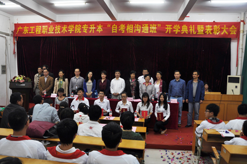 大會(huì)在雄壯的國歌聲中拉開了帷幕,首先由我校黨委副書記、常務(wù)副校長勞漢生教授致辭,他指出,我校秉承服務(wù)社會(huì)、服務(wù)學(xué)生的辦學(xué)理念,專為在校學(xué)生開設(shè)了專升本"自考相溝通班",目的是提高我校學(xué)生的學(xué)歷層次和就業(yè)競爭力,希望同學(xué)們把握好機(jī)會(huì),珍惜大學(xué)時(shí)光,一是樹立信心,堅(jiān)定追求;二是善于學(xué)習(xí),勇于學(xué)習(xí),樂于學(xué)習(xí),樹立終身學(xué)習(xí)理念;三是樹立持之以恒的拼搏精神,學(xué)做人、學(xué)知識(shí)、學(xué)技術(shù),博學(xué)奮進(jìn),爭取成為一名優(yōu)秀的廣東工程職業(yè)技術(shù)學(xué)院的本科生。接著,學(xué)生代表林曉芬、曾慧嬋分別代表新、老學(xué)生作了發(fā)言,與在座同學(xué)共勉并交流學(xué)習(xí)經(jīng)驗(yàn);自學(xué)考試輔導(dǎo)中心陳錫明主任也借此機(jī)會(huì)介紹了我校專升本學(xué)生的考試情況。