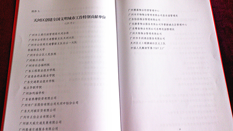 11月23日,天河區(qū)委區(qū)政府召開天河區(qū)創(chuàng)建全國文明城市工作表彰大會。會上,廣州市委常委、市委宣傳部部長甘新、天河區(qū)委書記石奇珠等領(lǐng)導(dǎo)對創(chuàng)建全國文明城市工作的先進(jìn)集體和先進(jìn)個人進(jìn)行表彰。我院獲得"天河區(qū)創(chuàng)建全國文明城市工作特別貢獻(xiàn)獎"。