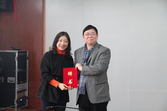 勞院長在致辭中對李士燕社長的到來表示熱烈的歡迎,并就學(xué)院發(fā)展的基本情況做了介紹,向大家介紹了李社長的簡歷,希望李社長在新聞、文秘等專業(yè)教育方面給予我院幫助和支持,展開深入合作。最后勞漢生院長代表學(xué)院向其頒發(fā)客座教授聘書。