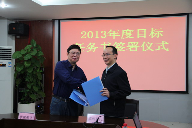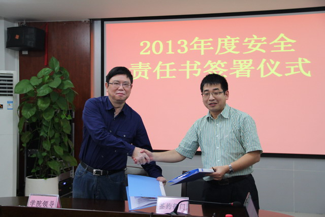 會(huì)議舉行了責(zé)任書簽訂儀式。黨委書記劉文清、院長勞漢生代表學(xué)院分別與各單位、各部門的代表簽訂2013年黨風(fēng)廉政建設(shè)責(zé)任書、工作目標(biāo)責(zé)任書、安全工作責(zé)任書、計(jì)劃生育責(zé)任書。