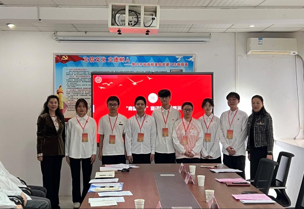 李麗校長和信息工程學(xué)院黨委桂愛民書記為“青春向黨”宣講團(tuán)學(xué)生黨員代表授予胸牌。“青春向黨”宣講團(tuán)第六期宣講員代表張贊柳同學(xué)以“我心中最美的奮斗者——彭菲”為主題進(jìn)行了宣講展示。學(xué)生黨員代表胡海旭、李湘兒談了學(xué)習(xí)黨的二十屆三中全會(huì)精神心得與感悟。