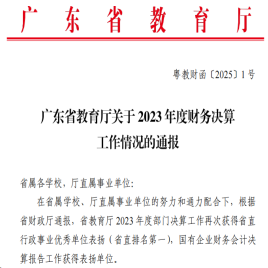 近期省教育廳通報了2023年度教育系統(tǒng)財務(wù)決算工作情況,我校獲得表揚(yáng)單位。這是我校的財務(wù)決算工作連續(xù)六年獲得上級通報表彰。