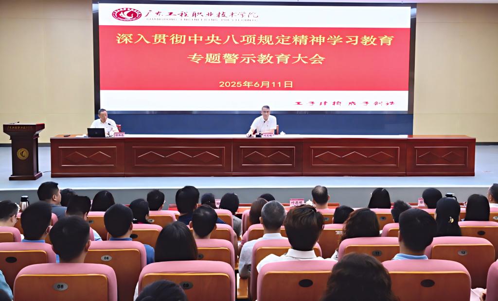 為持續(xù)推動(dòng)深入貫徹中央八項(xiàng)規(guī)定精神學(xué)習(xí)教育走深走實(shí),進(jìn)一步加強(qiáng)作風(fēng)建設(shè),6月11日上午,學(xué)校在省職教城校區(qū)報(bào)告廳召開深入貫徹中央八項(xiàng)規(guī)定精神學(xué)習(xí)教育警示教育大會(huì)。全體校領(lǐng)導(dǎo)、學(xué)校紀(jì)委委員、全體中層干部、各級(jí)黨組織代表參會(huì),會(huì)議由學(xué)校黨委書記葉忠明主持。