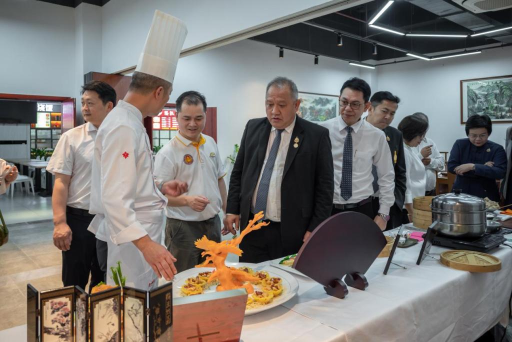 代表團(tuán)也參加學(xué)校與廣州酒家共同舉辦的“粵菜烹飪技藝”非物質(zhì)文化遺產(chǎn)交流體驗(yàn)活動(dòng),代表團(tuán)對“粵菜烹飪技藝”蘊(yùn)含的中國傳統(tǒng)文化稱贊不已。
