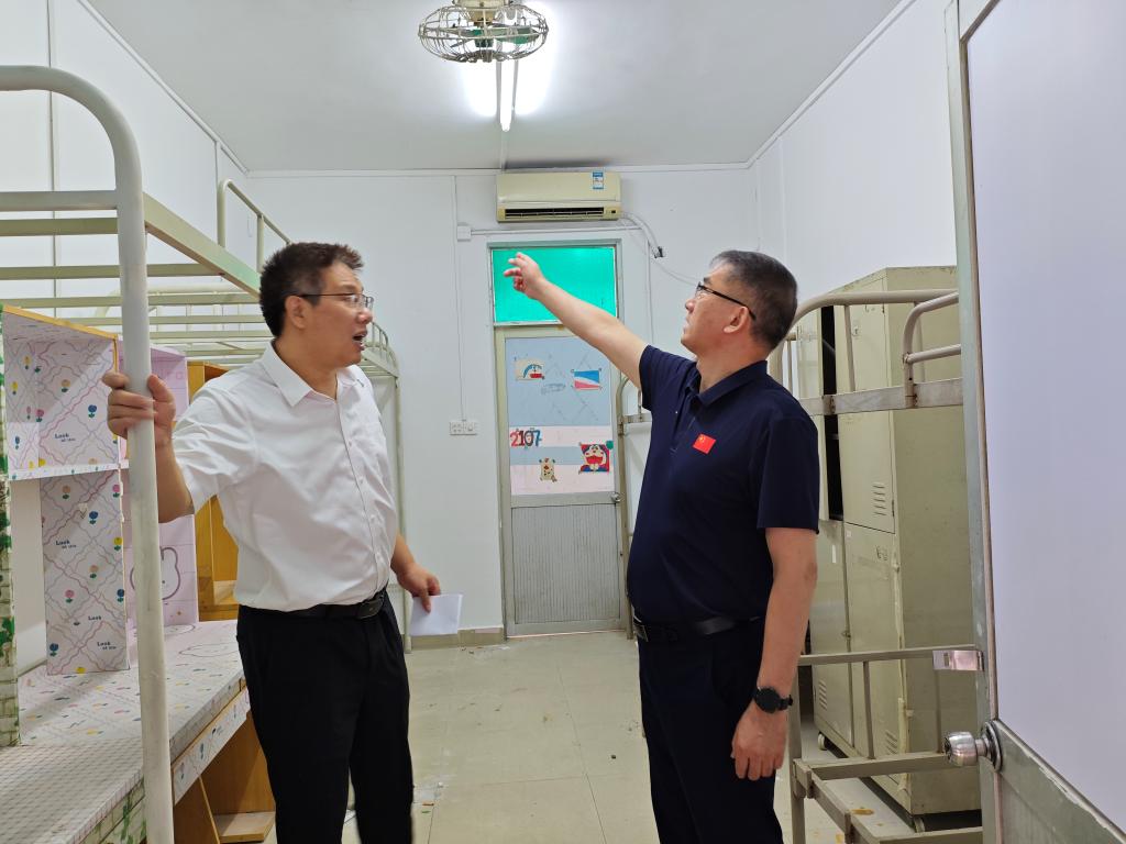 8月6日,在廣州校區(qū),葉忠明書記來到東區(qū)1-6棟學生宿舍,檢查宿舍翻新修繕工程推進情況,仔細查看宿舍環(huán)境衛(wèi)生、積水容器清理情況,檢查校園雜草、積水、垃圾清理情況。葉忠明書記強調,學校疫情防控工作專班要統(tǒng)籌做好校園疫情防控工作,后勤、學工、宣傳等職能部門要按職責強化校園環(huán)境衛(wèi)生和蚊媒監(jiān)測消殺、強化師生健康管理和宣傳教育、強化物資儲備和應急處置能力,確保師生健康安全。