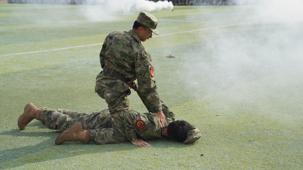 迷彩青春,淬火成鋼。全體參訓(xùn)新生精神抖擻,以飽滿的熱情和昂揚(yáng)的斗志投入到軍訓(xùn)科目會(huì)操中。列隊(duì)方陣步步鏗鏘、口號(hào)嘹亮,展現(xiàn)出新時(shí)代大學(xué)生蒸蒸日上的蓬勃朝氣;匕首操、捕俘拳、擒敵拳動(dòng)作果敢、威風(fēng)凜凜,展現(xiàn)出當(dāng)代大學(xué)生艱辛磨練后的堅(jiān)韌意志;應(yīng)急長(zhǎng)棍、應(yīng)急短棍氣勢(shì)如虹,虎虎生風(fēng),展現(xiàn)出不畏強(qiáng)敵的浩然正氣;戰(zhàn)術(shù)演練力貫千鈞、銳不可擋,展現(xiàn)出靈活的戰(zhàn)術(shù)運(yùn)用和頑強(qiáng)的戰(zhàn)斗精神,整個(gè)軍訓(xùn)科目會(huì)操贏得了現(xiàn)場(chǎng)陣陣掌聲。