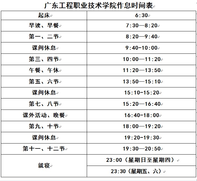 附件:廣東工程職業(yè)技術(shù)學院作息時間表