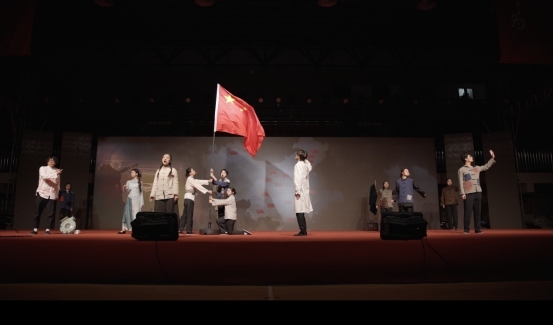展演尾聲,與會師生共同齊聲合唱《國際歌》等經(jīng)典紅色歌曲,展演在觀眾熱烈持久的掌聲中圓滿落幕。