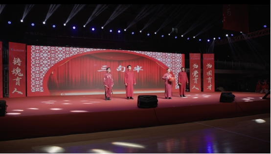為了讓理論宣傳既有高度又接地氣,四名教師手持鑼鼓镲表演“三句半”,用通俗幽默又飽含深意的語言,生動講述了馬克思主義學(xué)院在專業(yè)建設(shè)、教學(xué)改革、理論創(chuàng)新、服務(wù)社會等方面的探索與成就,通過傳統(tǒng)曲藝與時代主題的巧妙融合,獲得整整掌聲。