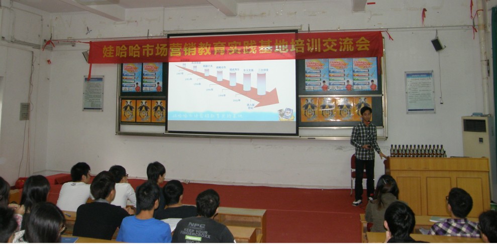 為了讓參賽者能更好的了解本次比賽,3月14日下午杭州娃哈哈集團廣東分公司市場部許經(jīng)理在綜合樓102室為參賽者舉行了主題為"娃哈哈市場營銷教育實踐基地"的培訓(xùn)交流會,各隊指導(dǎo)老師也應(yīng)邀出席,培訓(xùn)會由管理工程系梁濤主任主持。