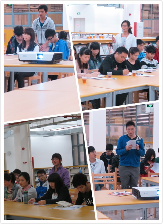 座談中,學(xué)生工作部張華部長(zhǎng)談到,圖書館是大學(xué)生三點(diǎn)一線生活中重要的一點(diǎn),希望同學(xué)們?cè)诋?dāng)今網(wǎng)絡(luò)信息時(shí)代既要利用好網(wǎng)絡(luò)知識(shí),也要充分利用好書本知識(shí),開(kāi)卷有益,學(xué)會(huì)思考,增添智慧,要求參會(huì)的各院系學(xué)生代表不僅自身要利用好圖書館也要引導(dǎo)本院系更多的同學(xué)走進(jìn)圖書館。