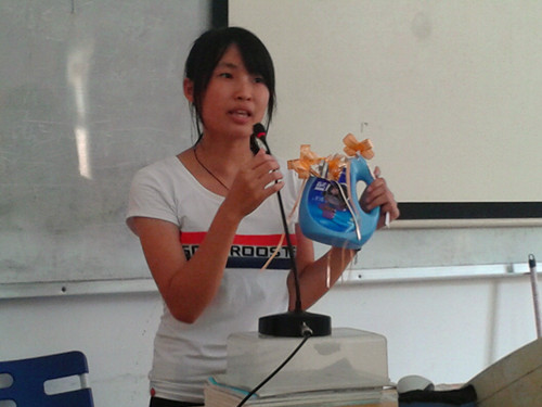 活動現(xiàn)場,8支入圍決賽的隊伍展開了激烈角逐。參賽作品為現(xiàn)場制作,原材料均采自宿舍常用生活廢舊用品。經過選手們的巧手,紙盒、塑料瓶、破舊牛仔褲、龍眼枝和核等廢舊物品華麗轉身,成為六角精品盒、七彩風鈴、嘻哈風格手提包、精致掛飾……還有參賽選手利用物理學原理及豐富的想象力,把廢紙和塑料瓶神般結合成了能飛向高空400米的水箭炮。一件件獨具匠心、妙趣橫生的手工作品,擺滿了整個教室。經過評選,建筑工程學院陳鄧強團隊憑借實用性強、精致度高精品盒獲得評委青睞,一舉奪冠。