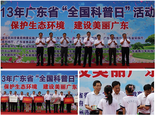 9月14日上午10時(shí),2013年廣東省"全國(guó)科普日"活動(dòng)在廣州市越秀區(qū)英雄廣場(chǎng)拉開(kāi)帷幕,廣東省人民政府副省長(zhǎng)陳云賢出席啟動(dòng)儀式并宣布2013年廣東省"全國(guó)科普日"活動(dòng)啟動(dòng)。省科協(xié)黨組書(shū)記、專(zhuān)職副主席何真,省委宣傳部副部長(zhǎng)蔡伏青,省環(huán)保廳黨組副書(shū)記、巡視員王子葵,省教育廳教育研究院院長(zhǎng)湯貞敏,省科技廳副巡視員周木堂,省食品藥品監(jiān)督管理局副局長(zhǎng)陳魯峰,廣州市越秀區(qū)人民政府副區(qū)長(zhǎng)賴(lài)志鴻和越秀區(qū)大東街黨工委書(shū)記李榮等領(lǐng)導(dǎo)嘉賓出席活動(dòng)。啟動(dòng)儀式由省科協(xié)副主席吳煥泉主持。廣東工程職業(yè)技術(shù)學(xué)院科普志愿者擔(dān)任現(xiàn)場(chǎng)志愿者工作。