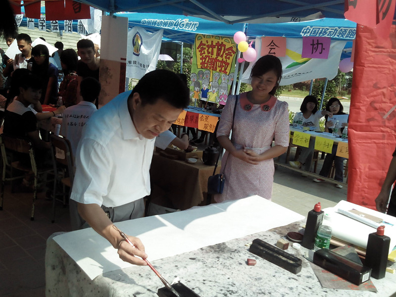 活動中,校黨委委員、副校長李艇和校團委黃馥麗書記來到活動現(xiàn)場與同學們親切交流。李校長親切了解新生的興趣愛好和參與意愿,鼓勵廣大新生積極報名參加社團,在參與社團活動中培養(yǎng)興趣愛好、提高綜合素質(zhì)、促進人格完善。李校長走到書畫協(xié)會,向現(xiàn)場工作人員仔細詢問各社團發(fā)展情況、特色活動,并交流起來,還現(xiàn)場"演繹"書法表演,受到學生的喝彩。他指出:"鼓勵廣大學生社團緊緊圍繞服務廣大同學成長成才的中心目標,結(jié)合當下青年學生特點,進一步加強社團自身建設,多設計舉辦有文化、有內(nèi)涵、寓教于樂的活動,增強活動的吸引力和影響力,擴大活動的參與度和普及面,為同學們提供一個學習交流、展示鍛煉自我的平臺。"