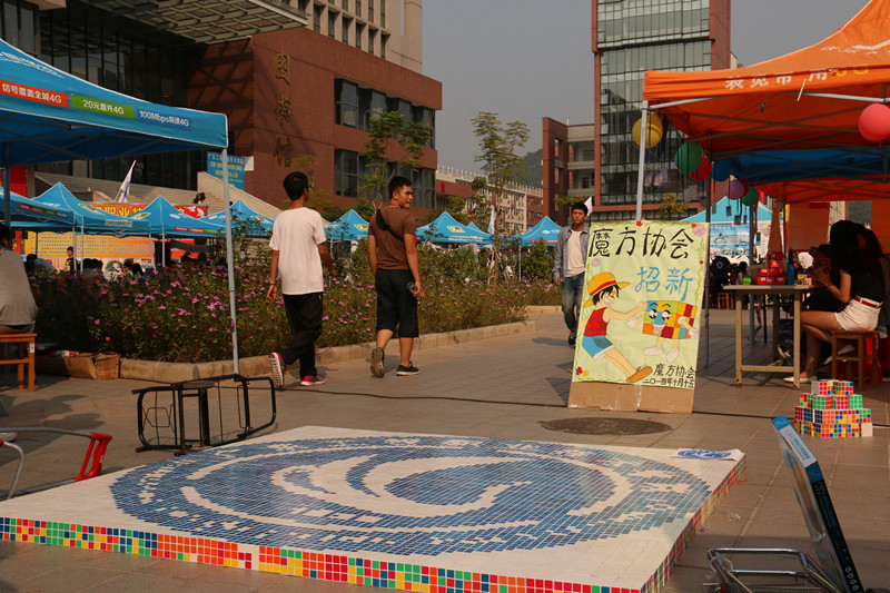 在招新的現(xiàn)場,生動醒目的宣傳標語,新穎漂亮的招新海報,五彩繽紛的圖片,整齊有序的帳篷,來來往往的同學,呈現(xiàn)出一幅百花齊放、百家爭鳴的景象,令人目不暇接,也吸引了無數(shù)同學前來咨詢報名。各社團在招新現(xiàn)場各顯神通,努力為自己的社團"招兵買馬",進行了富有特色的展示。器樂協(xié)會舉辦了氣氛火爆的小型演唱會,輪滑協(xié)會展示了讓人驚嘆的花式輪滑,動漫協(xié)會的cosplay時尚現(xiàn)代,志愿者協(xié)會輸出了正能量,更不用說武術(shù)表演、藝術(shù)團的表演了……整個招新現(xiàn)場氣氛熱烈,秩序井然,洋溢著青春的活力。