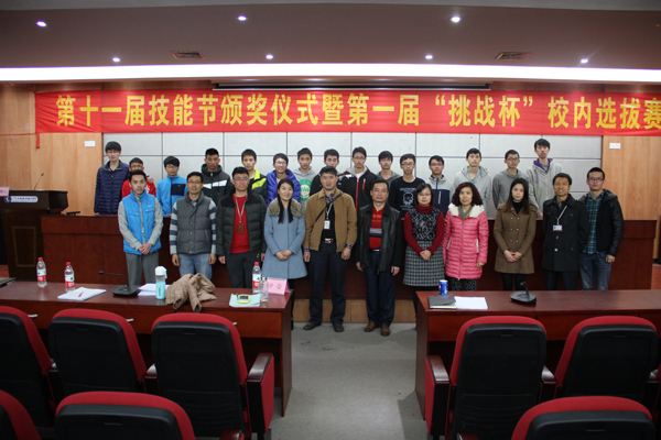 12月22日下午,在圖書館學術報告廳隆重舉行我校第十一屆技能節(jié)職業(yè)技能競賽頒獎儀式暨第一屆"挑戰(zhàn)杯"大學生課外學術科技作品競賽校內(nèi)選拔賽,學校校長勞漢生教授,副校長李艇教授,教務處肖萍處長、科研處王勝利處長、學生工作部張華部長,出席本次活動,頒獎儀式由校團委書記黃馥麗主持。