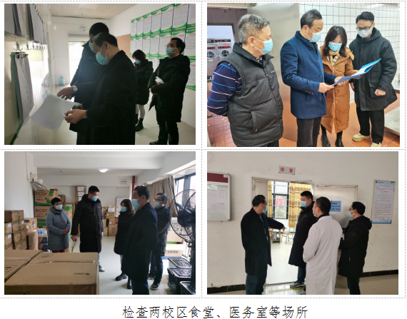 徐振昌一行實(shí)地檢查了兩校區(qū)食堂、醫(yī)務(wù)室、醫(yī)學(xué)觀察隔離區(qū)、防疫物資存放處等場所,與工作人員進(jìn)行廣泛交流,仔細(xì)詢問他們在工作中存在的困難,結(jié)合上級(jí)有關(guān)部門防疫檢查發(fā)現(xiàn)的問題,重點(diǎn)監(jiān)督整改落實(shí)情況,并對食品安全、消防安全、諾如病毒防控等提出改進(jìn)建議。