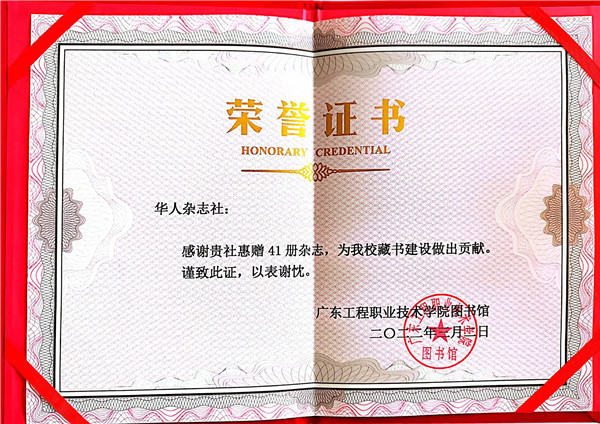 鄧中云館長(zhǎng)代表圖書館接收了《華人》雜志社捐贈(zèng)的雜志,對(duì)《華人》雜志社的捐贈(zèng)表示誠(chéng)摯的感謝,并向《華人》雜志社頒發(fā)了捐贈(zèng)證書。他表示捐贈(zèng)雜志進(jìn)一步豐富了圖書館的館藏資源,對(duì)圖書館的發(fā)展建設(shè)有著很好的促進(jìn)作用,圖書館將對(duì)捐贈(zèng)雜志進(jìn)行妥善保管,盡快提供給讀者閱讀使用,并祝愿《華人》雜志越辦越好。