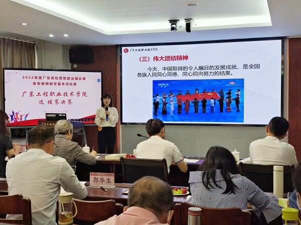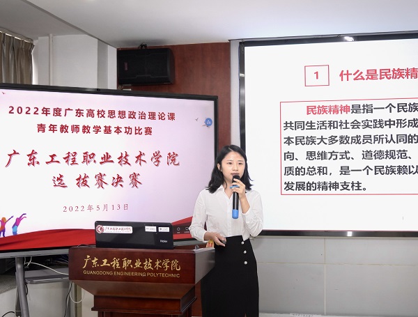 2022年5月13日,我校在廣州校區(qū)辦公樓511室舉辦了2022年度廣東高校思想政治理論課青年教師教學基本功比賽校內(nèi)選拔賽決賽,學校黨委副書記方燕教授、廣州番禺職業(yè)技術(shù)學院曹群教授、順德職業(yè)技術(shù)學院董同彬教授、廣東農(nóng)工商職業(yè)技術(shù)學院李曉培教授、廣東機電職業(yè)技術(shù)學院林國強教授擔任了比賽的評委,我校馬克思主義學院院長郭華生在開幕上致辭,并主持了決賽。我校及其他兄弟院校專兼思政課教師近50人現(xiàn)場觀摩了比賽。