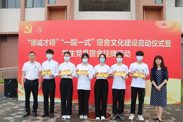 學(xué)校領(lǐng)導(dǎo)為“德誠才精”“一院一式”宿舍文化建設(shè)揭牌啟動(dòng)