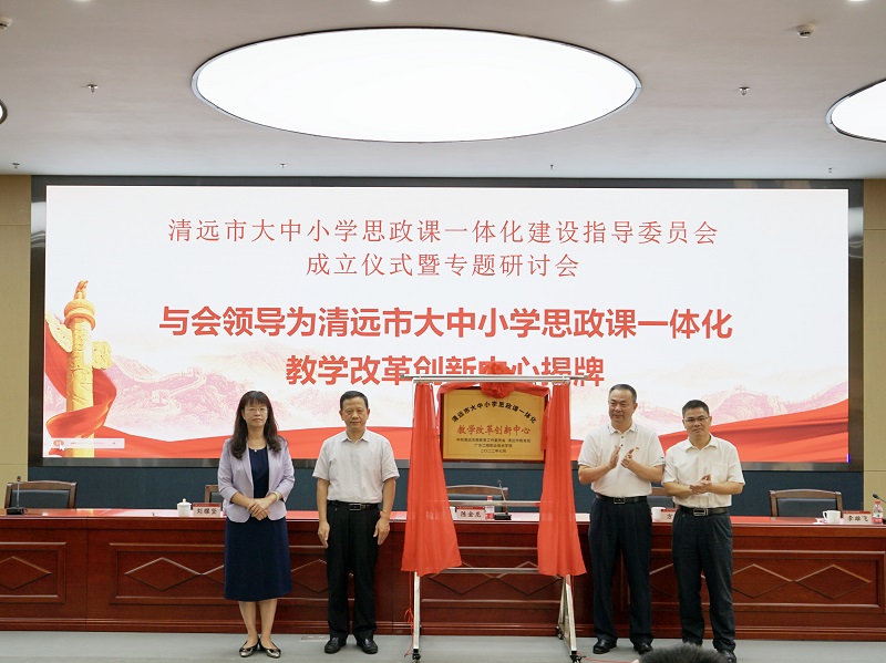 與會領(lǐng)導(dǎo)、專家共同為清遠(yuǎn)市大中小學(xué)思政課一體化教學(xué)改革創(chuàng)新中心揭牌