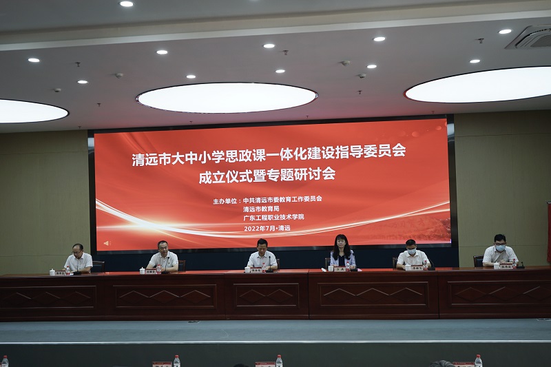 “鼓勵各地高校積極開展與中小學(xué)思政課共建,共同推動大中小學(xué)思政課一體化建設(shè)”。2022年7月8日,清遠(yuǎn)市大中小學(xué)思政課一體化建設(shè)指導(dǎo)委員會成立儀式暨專題研討會在我校省職教城校區(qū)舉行,來自不同學(xué)段不同類型的專家學(xué)者、教研員、名師和骨干教師齊聚一堂,共同為大中小學(xué)思政課一體化建設(shè)建言獻(xiàn)策。該活動由清遠(yuǎn)市教育局、我校馬克思主義學(xué)院和廣東省高校思想政治理論課方燕名師工作室聯(lián)合舉辦。清遠(yuǎn)市教育局領(lǐng)導(dǎo),清遠(yuǎn)市大中小學(xué)思政課一體化建設(shè)指導(dǎo)委員會委員、專家指導(dǎo)組成員,學(xué)校領(lǐng)導(dǎo)、清遠(yuǎn)市不同學(xué)段不同類型教師代表參加了本次活動。