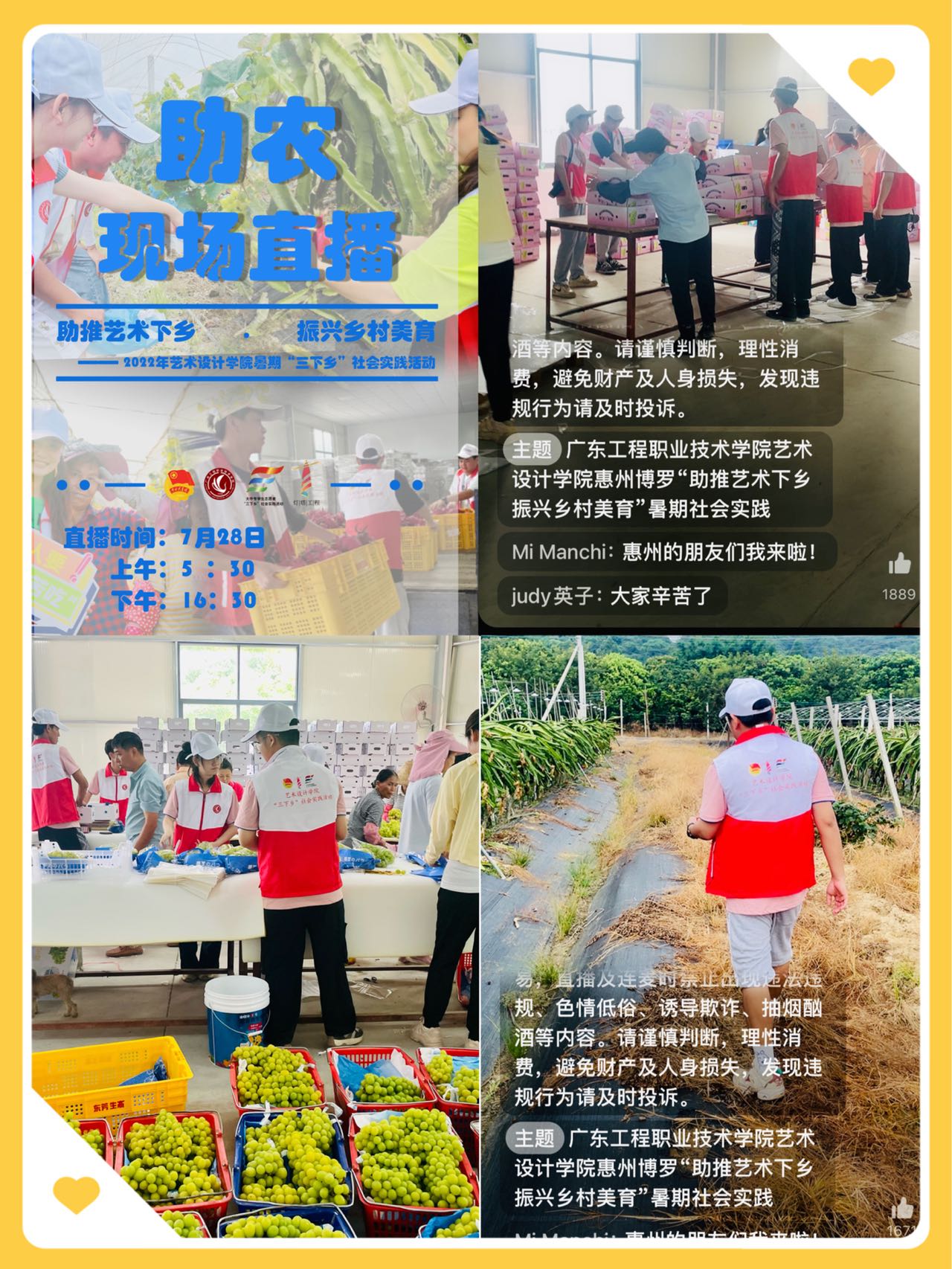 為貫徹習(xí)近平總書(shū)記關(guān)于青年工作的重要思想,引導(dǎo)和幫助廣大青年學(xué)生在社會(huì)課堂中“受教育、長(zhǎng)才干、作貢獻(xiàn)”,以實(shí)際行動(dòng)迎接黨的二十大召開(kāi),2022年7月26日至7月31日為期六天,廣東工程職業(yè)技術(shù)學(xué)院藝術(shù)設(shè)計(jì)學(xué)院向美而行實(shí)踐團(tuán)以“助推藝術(shù)下鄉(xiāng) 振興鄉(xiāng)村美育”為主題,10名師生深入惠州市博羅縣圍嶺村,開(kāi)展特色鄉(xiāng)村美育、實(shí)地考察調(diào)研、助農(nóng)務(wù)農(nóng)電商直播等內(nèi)容系列社會(huì)實(shí)踐活動(dòng)。