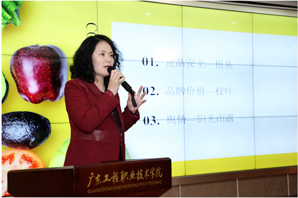 三碗(廣州)信息科技有限公司李映森總經(jīng)理向?qū)W生分享選擇健康食品有關(guān)注意事項(xiàng),質(zhì)量品牌專業(yè)委員會(huì)副主任連芳菲從食品安全與企業(yè)品牌角度闡釋企業(yè)品質(zhì)把控與品牌價(jià)值的內(nèi)在關(guān)聯(lián)。