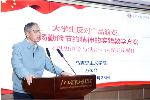 我校馬克思主義學(xué)院教研室主任萬(wàn)傳華副教授為學(xué)生開(kāi)展反對(duì)食品浪費(fèi)、弘揚(yáng)勤儉節(jié)約精神現(xiàn)場(chǎng)實(shí)踐教學(xué),號(hào)召學(xué)生參與光盤行動(dòng)、廣東反食品浪費(fèi)隨手拍、反食品浪費(fèi)自律公約簽名等活動(dòng),共同營(yíng)造節(jié)約食品的良好氛圍。
