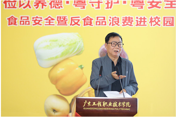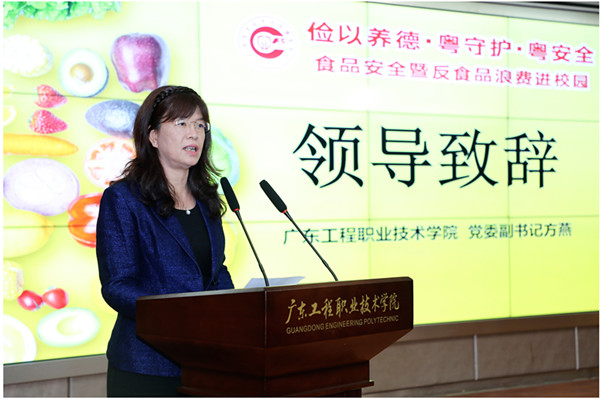學(xué)校黨委副書(shū)記方燕教授代表學(xué)校對(duì)出席活動(dòng)嘉賓表示熱烈的歡迎,并對(duì)我校基本概況及食品安全保障情況進(jìn)行了介紹。方燕副書(shū)記表示,國(guó)以民為本,民以食為天,食以安為先,加強(qiáng)食品安全工作,關(guān)系我國(guó)14億人的身體健康和生命安全,必須抓得緊而又緊,廣大青年學(xué)生是祖國(guó)的未來(lái),也是民族的希望,保障學(xué)校食品安全、培養(yǎng)學(xué)生反對(duì)浪費(fèi)食品的意識(shí),是提高民族素質(zhì)的一項(xiàng)基礎(chǔ)工程,是實(shí)現(xiàn)宏偉目標(biāo)的重要保證,是社會(huì)主義現(xiàn)代化建設(shè)事業(yè)興旺發(fā)達(dá)的必然要求。廣東工程職業(yè)技術(shù)學(xué)院將一如既往認(rèn)認(rèn)真真、扎扎實(shí)實(shí)做好校園食品安全暨反浪費(fèi)工作,讓“儉以養(yǎng)德粵守護(hù)粵安全”主題活動(dòng)成為學(xué)校一道亮麗的風(fēng)景!