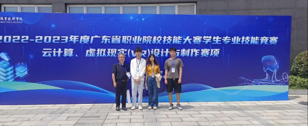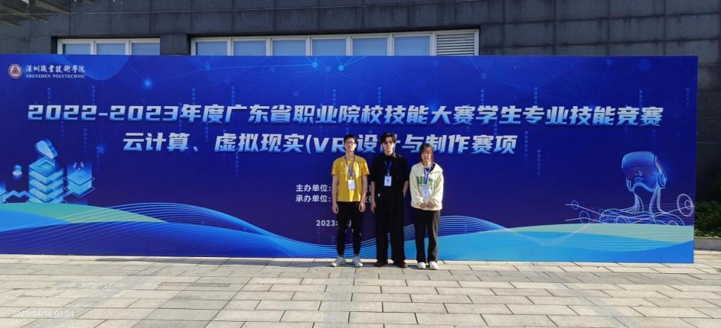 4月16日,由廣東省教育廳主辦的2022-2023年度廣東省職業(yè)院校技能大賽虛擬現(xiàn)實(VR)設計與制作賽項(高職組)在深圳職業(yè)技術學院順利舉行。該賽項共有來自廣東省的60多家學校參加,參賽隊伍120多支,競爭異常激烈。由我校人工智能學院黃裕鋒、黃富亮老師指導的卓新明、李敏婷、楊孟良團隊以第三名的優(yōu)異成績榮獲省一等獎;宮娜娜、陳娟老師指導的胡小凡、吳紹瑩、張斯莉團隊獲省三等獎。這是我院參賽團隊首次獲得該賽項一等獎。