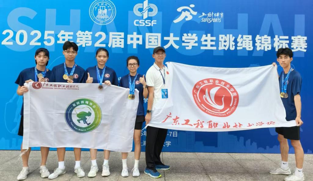 在剛剛落幕的2025年第2屆中國大學(xué)生跳繩錦標(biāo)賽上,我校花樣跳繩協(xié)會(huì)奮勇拼搏,再創(chuàng)佳績,共斬獲1金1銀3銅,并奪得兩個(gè)第4名、一個(gè)第5名、第6名和第8名的優(yōu)異成績,為學(xué)校爭得了國家級(jí)榮譽(yù),展現(xiàn)了廣東工程學(xué)子昂揚(yáng)向上的精神風(fēng)貌和卓越的體育競技水平。