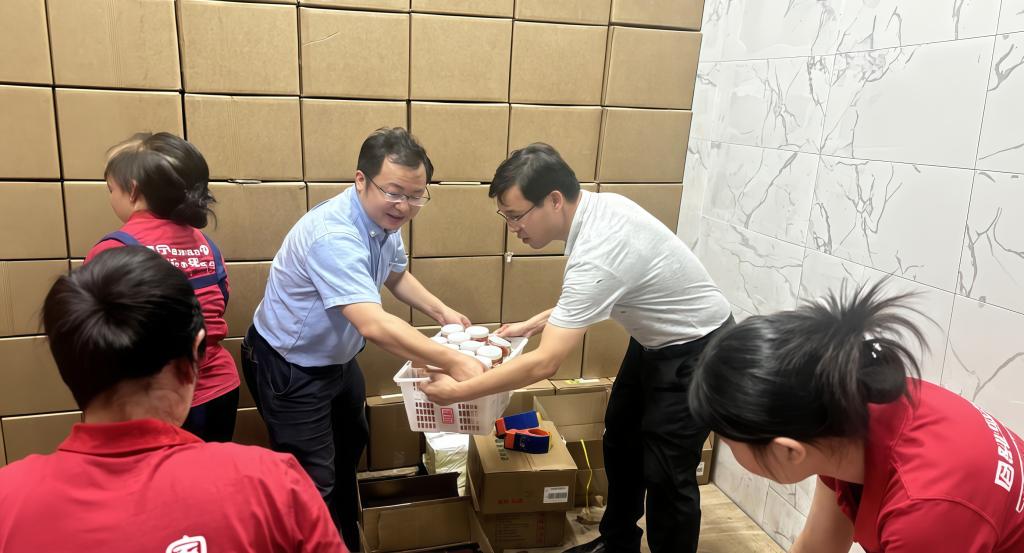 活動(dòng)現(xiàn)場(chǎng),我校派駐地方干部、省駐鎮(zhèn)幫扶工作隊(duì)與工作人員一起驗(yàn)貨、理貨、裝貨,爭(zhēng)取趕在“雙節(jié)”前將地方農(nóng)特產(chǎn)品發(fā)到每名教職員工手上。