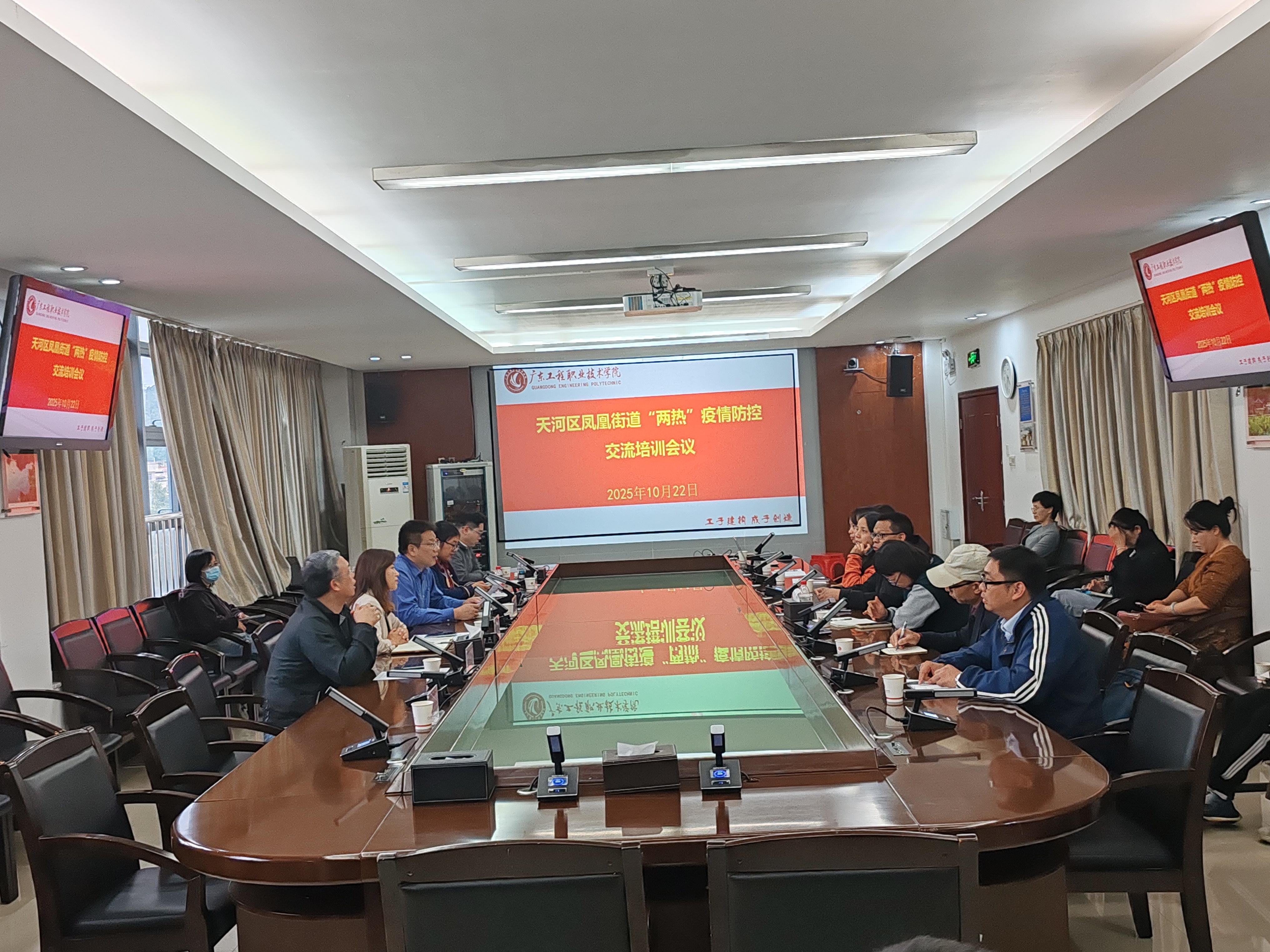2025年10月22日下午,廣州市天河區(qū)鳳凰街道辦組織轄區(qū)內(nèi)學校、集團單位到我校開展“兩熱”疫情防控工作交流培訓。交流培訓會議在廣州校區(qū)辦公樓615室召開,張永強副校長主持會議,鳳凰街道辦事處副主任李俊參加會議并講話。